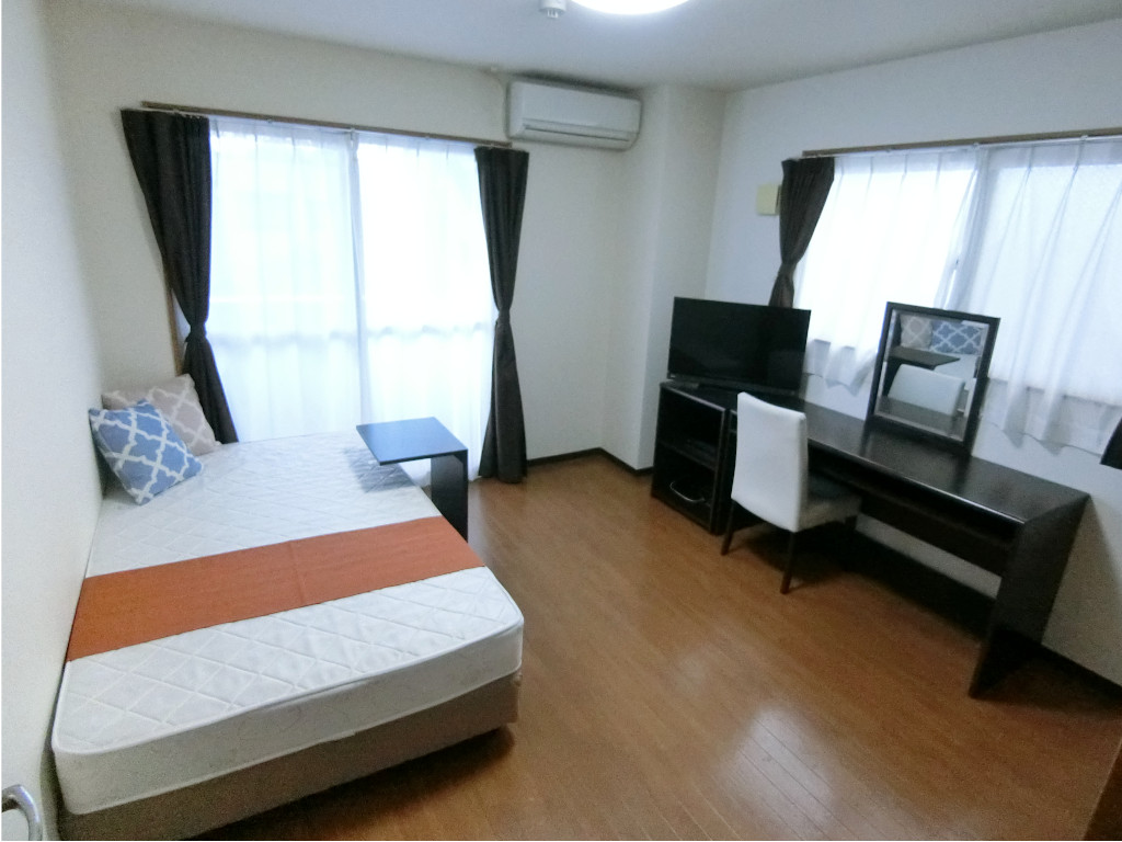 ・家具はデスク、ソファ、ダイニングテーブルセットなど居室に合わせて配置。