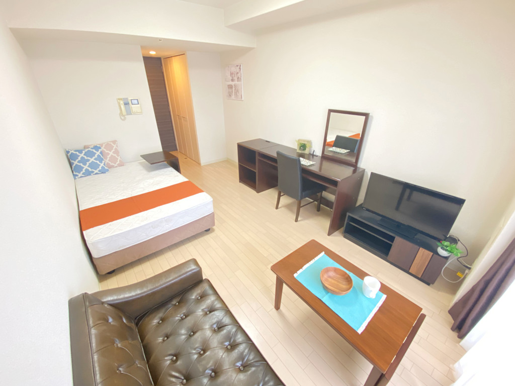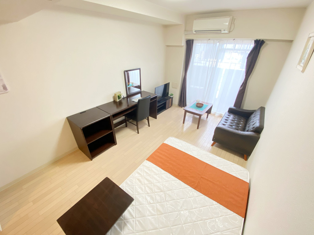 ・家具はデスク、ソファ、ダイニングテーブルセットなど居室に合わせて配置。
